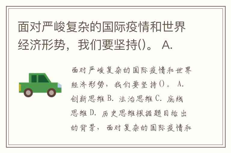 面对严峻复杂的国际疫情和世界经济形势,我们要坚持()。 A. 创新思维 B. 法治思维 C. 底线思维 D. 历史思维