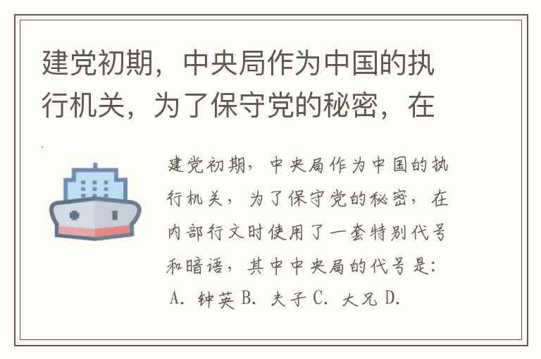 建党初期,中央局作为中国的执行机关,为了保守党的秘密,在内部行文时使用了一套特别代号和暗语,其中中央局的代号是: A. 钟英 B. 夫子 C. 大兄 D. 以上都正确