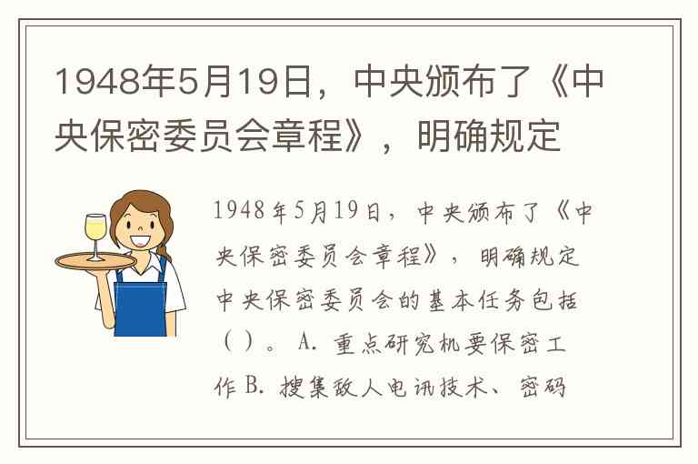 1948年5月19日,中央颁布的《中央保密委员会章程》明确规定了中央保密委员会的基本任务,其中包括以下内容: