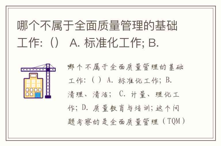 B. 清理、清洁:清理和清洁工作通常属于现场管理的一部分,但它并不是全面质量管理的核心工作。因此,这个选项可能是不属于全面质量管理的基础工作。