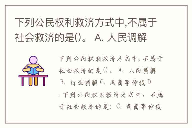 下列公民权利救济方式中,不属于社会救济的是()。 A. 人民调解 B. 行业调解 C. 民商事仲裁 D.