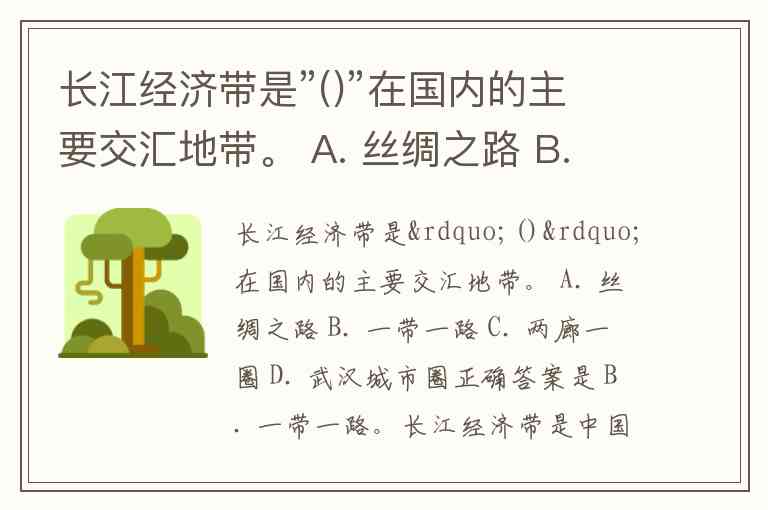 长江经济带是”()”在国内的主要交汇地带。 A. 丝绸之路 B. 一带一路 C. 两廊一圈 D. 武汉城市圈