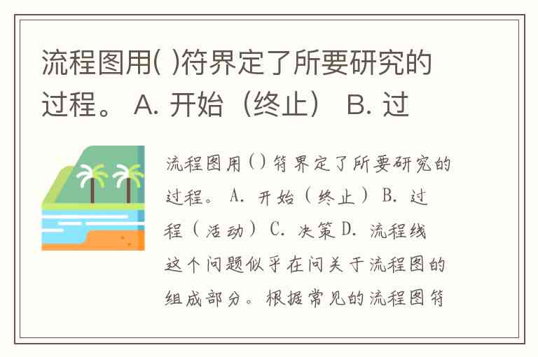 流程图用( )符界定了所要研究的过程。 A. 开始(终止) B. 过程(活动) C. 决策 D. 流程线