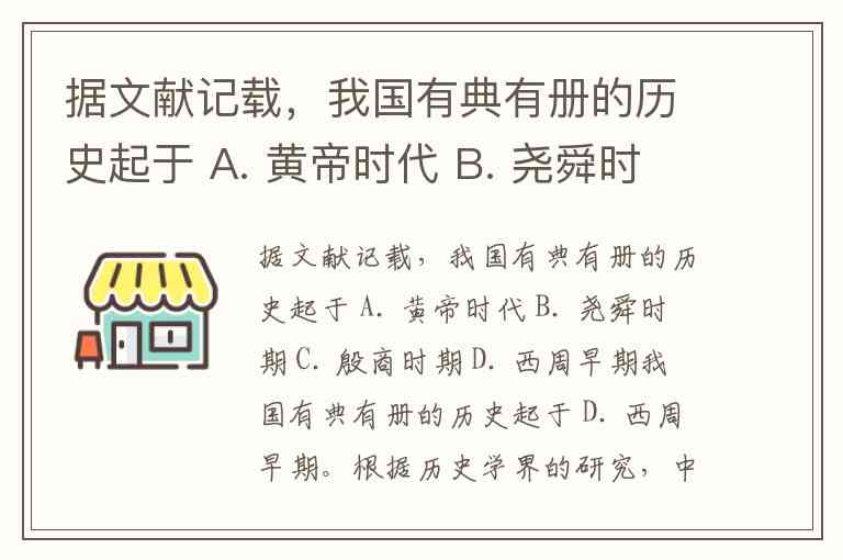据文献记载,我国有典有册的历史起于 A. 黄帝时代 B. 尧舜时期 C. 殷商时期 D. 西周早期