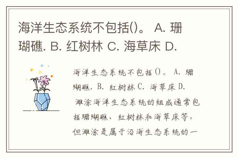 海洋生态系统不包括()。 A. 珊瑚礁. B. 红树林 C. 海草床 D. 滩涂