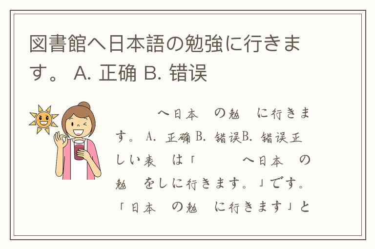 図書館へ日本語の勉強に行きます。 A. 正确 B. 错误