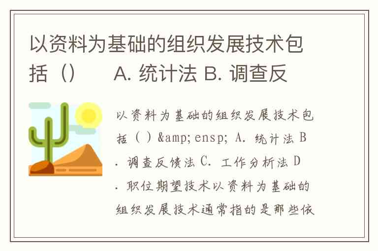 以资料为基础的组织发展技术包括() A. 统计法 B. 调查反馈法 C. 工作分析法 D. 职位期望技术