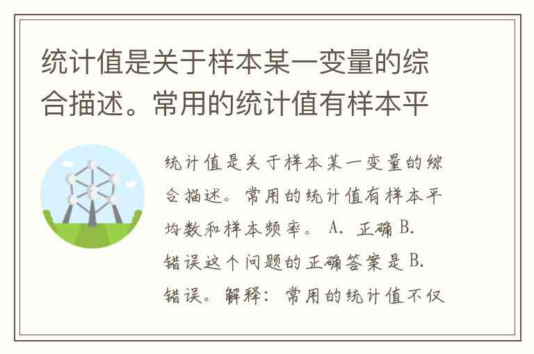 统计值是关于样本某一变量的综合描述。常用的统计值有样本平均数和样本频率。 A. 正确 B. 错误