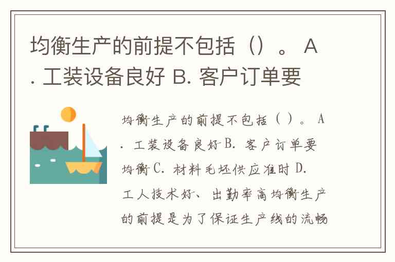 A. 工装设备良好:生产线的工装设备需要保持良好状态,这样才能保证生产过程的高效性和稳定性,是均衡生产的必要前提。