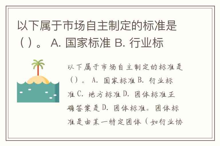 以下属于市场自主制定的标准是 ( ) 。 A. 国家标准 B. 行业标准 C. 地方标准 D. 团体标准