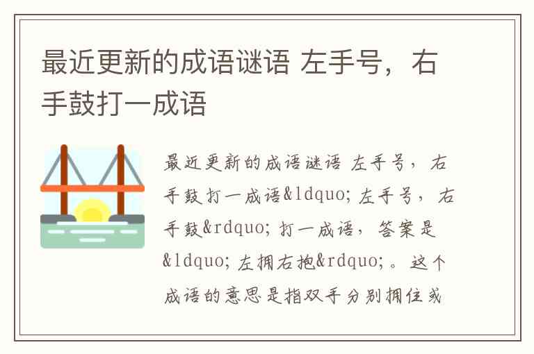 最近更新的成语谜语 左手号,右手鼓打一成语