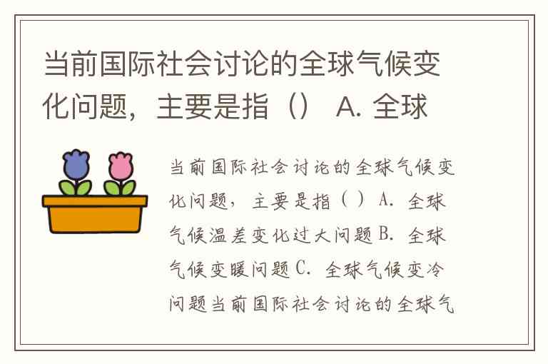 当前国际社会讨论的全球气候变化问题,主要是指() A. 全球气候温差变化过大问题 B. 全球气候变暖问题 C. 全球气候变冷问题