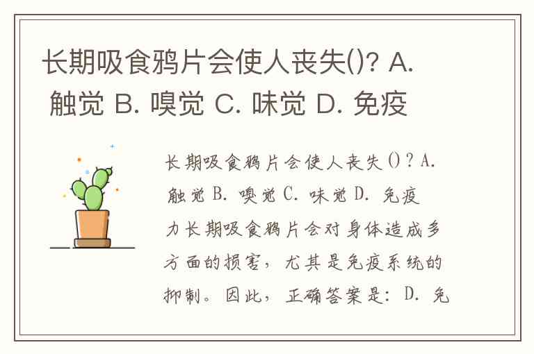 长期吸食鸦片会使人丧失()? A. 触觉 B. 嗅觉 C. 味觉 D. 免疫力