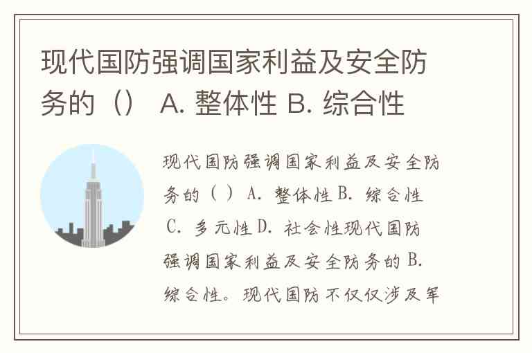 现代国防强调国家利益及安全防务的() A. 整体性 B. 综合性 C. 多元性 D. 社会性