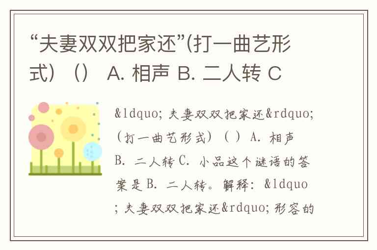 “夫妻双双把家还”(打一曲艺形式) () A. 相声 B. 二人转 C. 小品