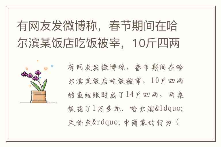 有网友发微博称,春节期间在哈尔滨某饭店吃饭被宰,10斤四两的鱼结账时成了14斤四两,两桌饭花了1万多元.哈尔滨“天价鱼”中商家的行为( ) ①侵犯了消费者的安全权和人格尊严权 ②违背了道德和法律的要求 ③违背了诚信和公平的原则 ④是一种不正当的竞争,是非正义的行为. A. ①②③ B. ①②④ C. ①③④ D. ②③④