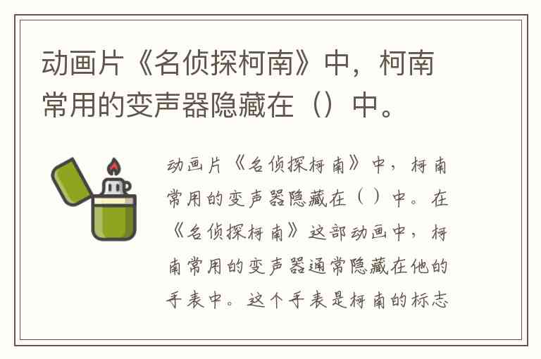在《名侦探柯南》这部动画中,柯南常用的变声器通常隐藏在他的手表中。这个手表是柯南的标志性道具之一,它不仅能够让他变声,还能在关键时刻用来解锁一些特殊功能。