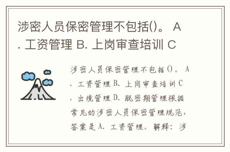 涉密人员保密管理不包括()。 A. 工资管理 B. 上岗审查培训 C. 出境管理 D. 脱密期管理