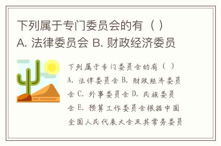 下列属于专门委员会的有( ) A. 法律委员会 B. 财政经济委员会 C. 外事委员会 D. 民族委员会 E. 预算工作委员会
