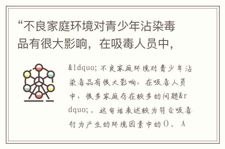 这句话表述的是“不良家庭环境对青少年沾染毒品有很大影响”,明显强调了家庭的作用。因此,最符合的选项是: