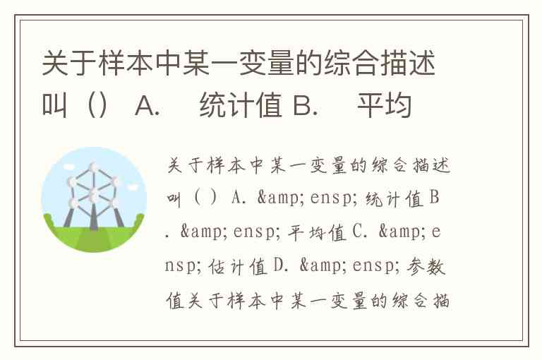 关于样本中某一变量的综合描述叫() A. 统计值 B. 平均值 C. 估计值 D. 参数值