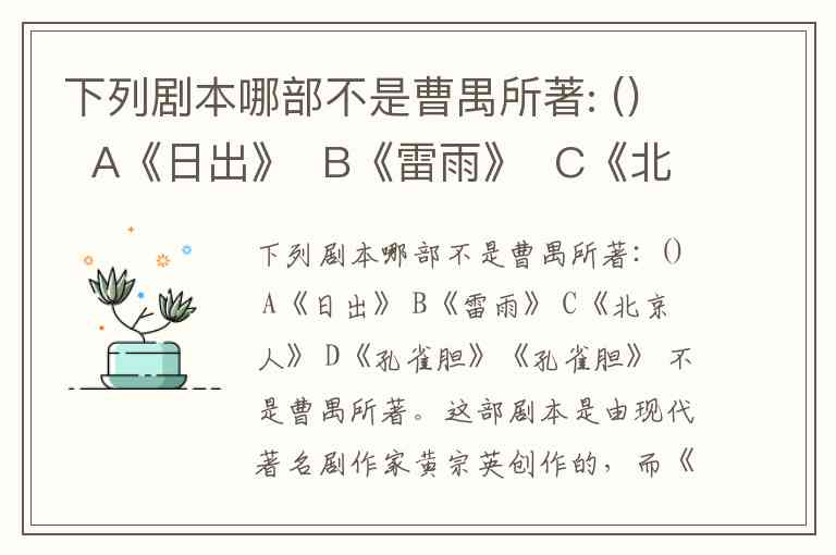 下列剧本哪部不是曹禺所著: () A《日出》 B《雷雨》 C《北京人》 D《孔雀胆》