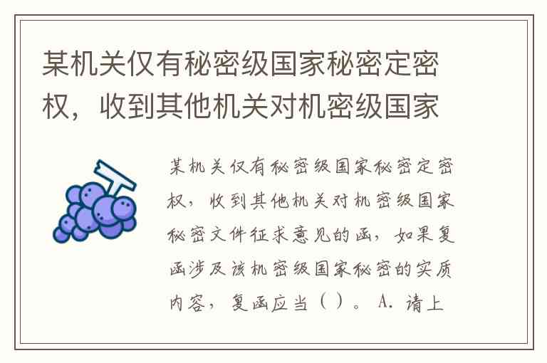 某机关仅有秘密级国家秘密定密权,收到其他机关对机密级国家秘密文件征求意见的函,如果复函涉及该机密级国家秘密的实质内容,复函应当()。 A. 请上级机关定密 B. 作出秘密级国家秘密标志 C. 作出机密级国家秘密标志 D. 按照工作秘密进行管理