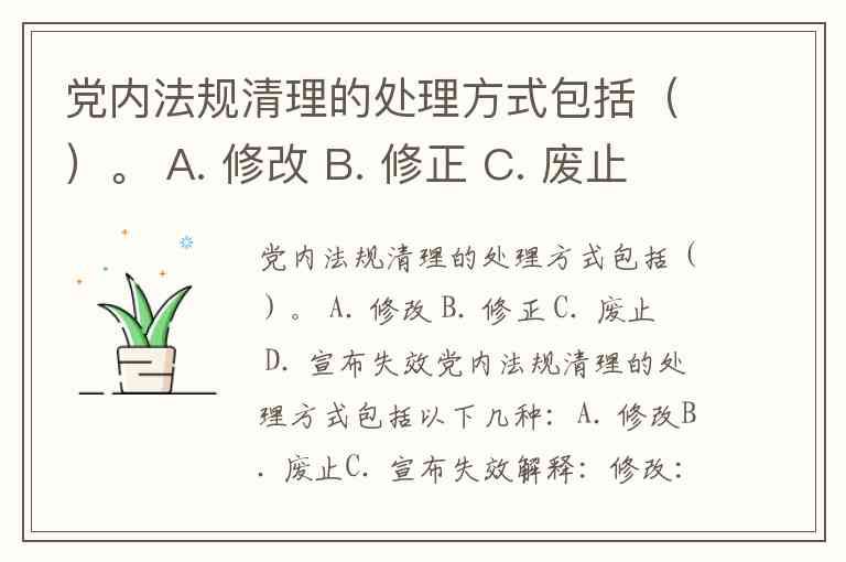 党内法规清理的处理方式包括()。 A. 修改 B. 修正 C. 废止 D. 宣布失效