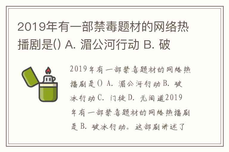 2019年有一部禁毒题材的网络热播剧是() A. 湄公河行动 B. 破冰行动 C. 门徒 D. 无间道