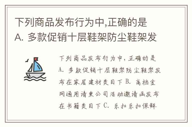 下列商品发布行为中,正确的是 A. 多款促销十层鞋架防尘鞋架发布在家居建材类目下 B. 高档金网通用请柬公司活动邀请函发布在书籍类目下 C. 乐扣乐扣保鲜盒储物盒发布在保鲜盒类目下