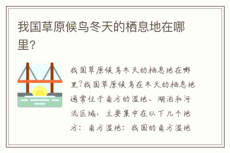 我国草原候鸟冬天的栖息地在哪里?