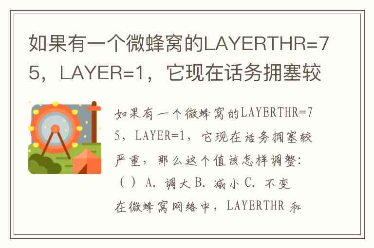 如果有一个微蜂窝的LAYERTHR=75,LAYER=1,它现在话务拥塞较严重,那么这个值该怎样调整:() A. 调大 B. 减小 C. 不变