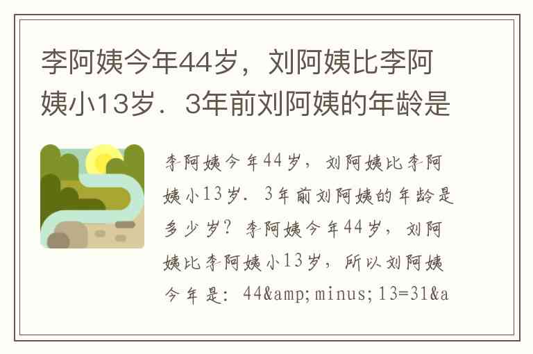 李阿姨今年44岁,刘阿姨比李阿姨小13岁,所以刘阿姨今年是: