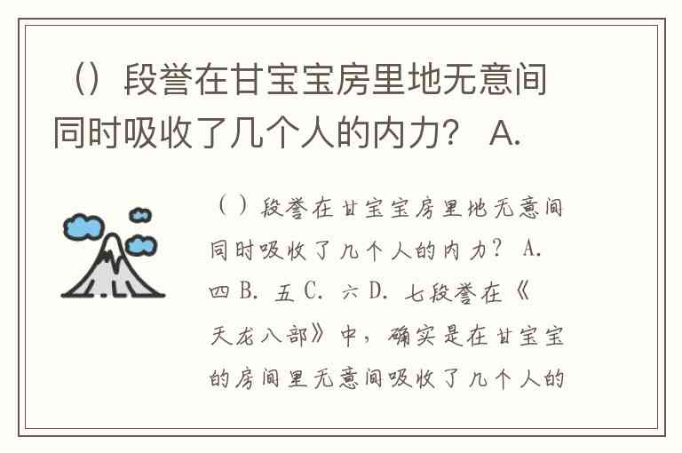 ()段誉在甘宝宝房里地无意间同时吸收了几个人的内力? A. 四 B. 五 C. 六 D. 七