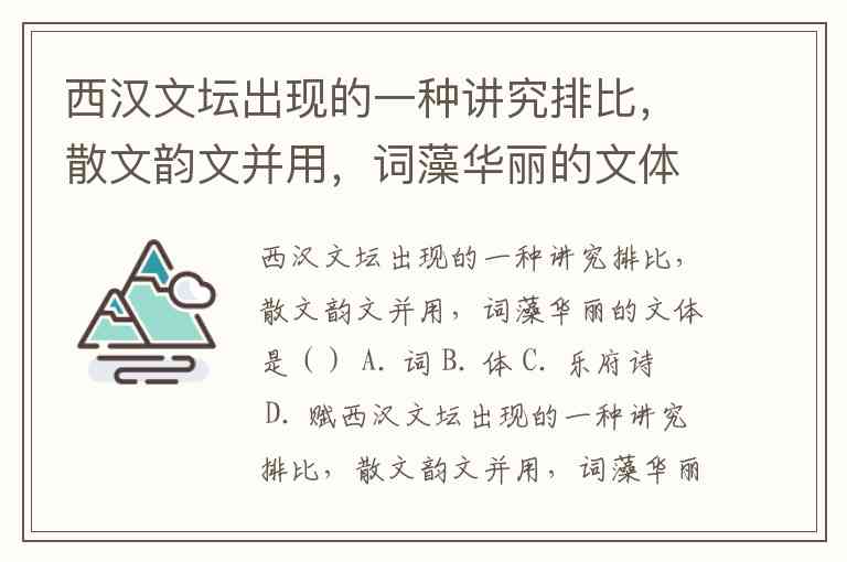 西汉文坛出现的一种讲究排比,散文韵文并用,词藻华丽的文体是() A. 词 B. 体 C. 乐府诗 D. 赋