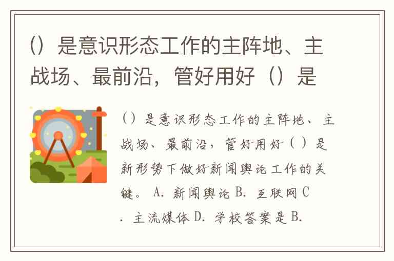 ()是意识形态工作的主阵地、主战场、最前沿,管好用好()是新形势下做好新闻舆论工作的关键。 A. 新闻舆论 B. 互联网 C. 主流媒体 D. 学校