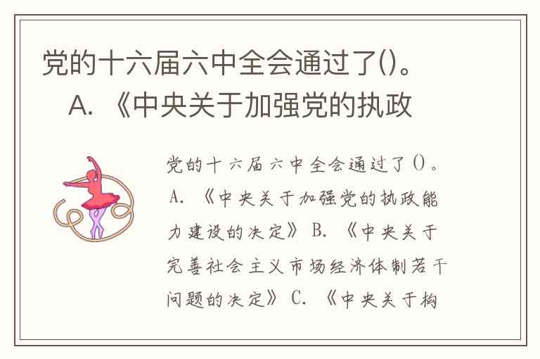 党的十六届六中全会通过了A. 《中央关于加强党的执政能力建设的决定》。