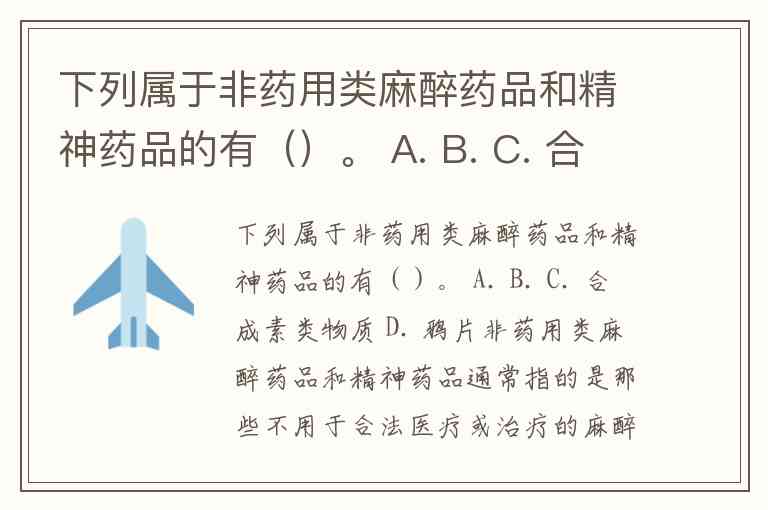非药用类麻醉药品和精神药品通常指的是那些不用于合法医疗或治疗的麻醉药品和精神药品。根据你给出的选项,我们可以分析一下: