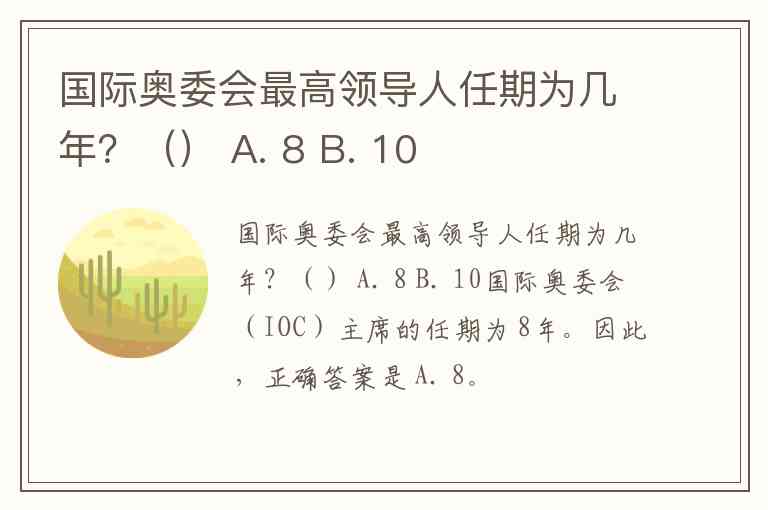 国际奥委会最高领导人任期为几年?() A. 8 B. 10