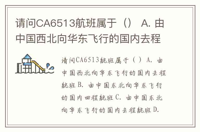 请问CA6513航班属于() A. 由中国西北向华东飞行的国内去程航班 B. 由中国东北向华东飞行的国内回程航班 C. 由中国东北向华东飞行的国内去程航班 D. 由中国东北向东飞行的国际去程航班
