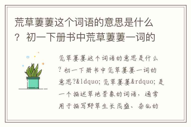 “荒草萋萋”是一个描述草地景象的词语,通常用于描写野草生长茂盛、杂乱的情景。