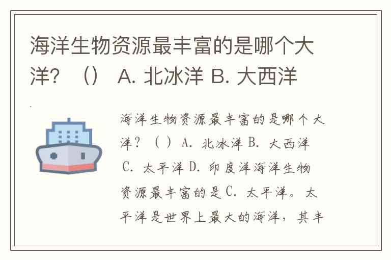 海洋生物资源最丰富的是哪个大洋?() A. 北冰洋 B. 大西洋 C. 太平洋 D. 印度洋