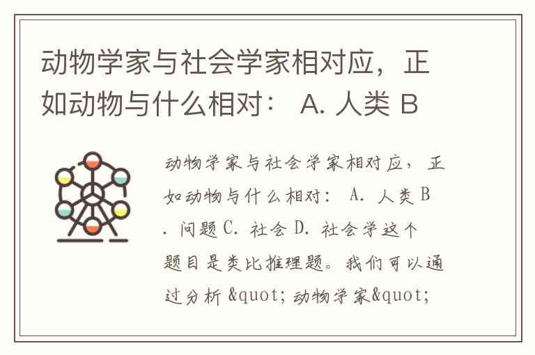 动物学家与社会学家相对应,正如动物与什么相对: A. 人类 B. 问题 C. 社会 D. 社会学