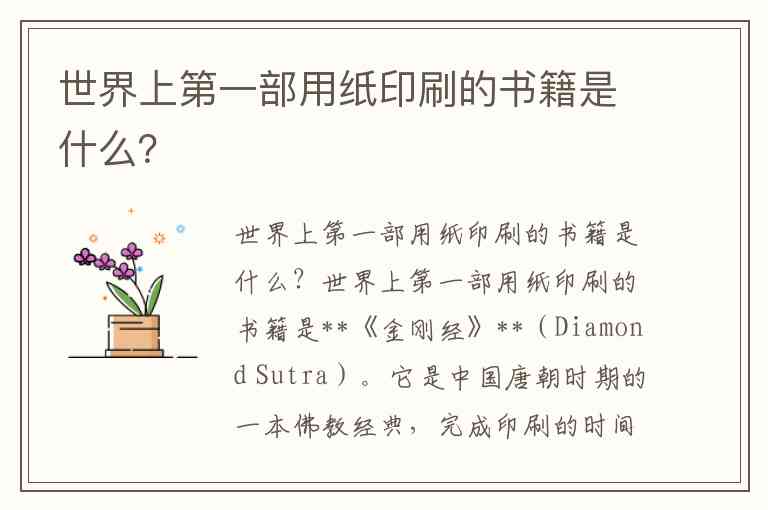 世界上第一部用纸印刷的书籍是什么?