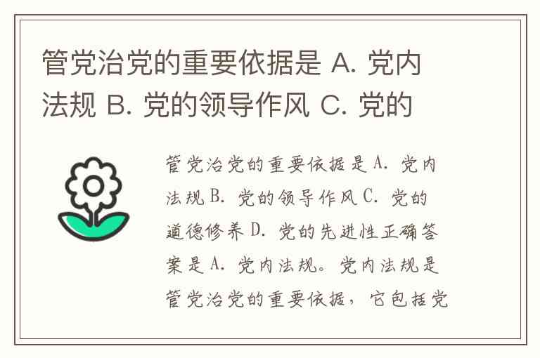 管党治党的重要依据是 A. 党内法规 B. 党的领导作风 C. 党的道德修养 D. 党的先进性