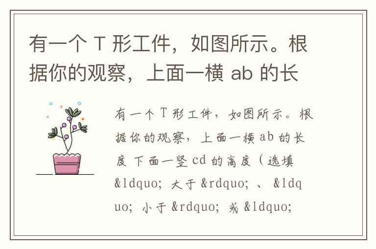 这个问题看起来是基于一个 T 形工件的几何特性进行分析。我们假设这个 T 形工件是由两部分构成的,上面是横的部分(ab),下面是竖的部分(cd)。你要比较横的长度和竖的高度,然后通过检验得出结论。根据题意,让我们分析: