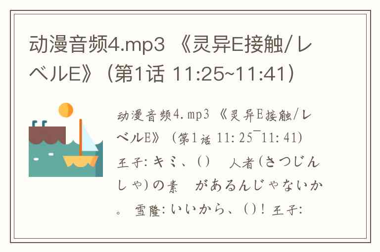 看起来你提供的是《灵异E接触/レベルE》这部动漫中第1话的一个片段。根据这个音频的对话,似乎是王子与雪隆之间的互动。根据你给出的空白部分,这里是一些可能的对话填空:
