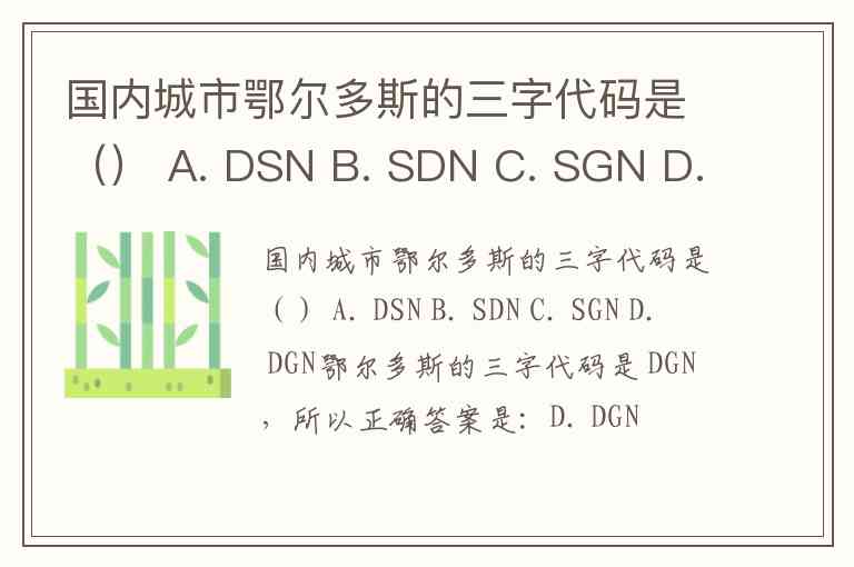 国内城市鄂尔多斯的三字代码是() A. DSN B. SDN C. SGN D. DGN