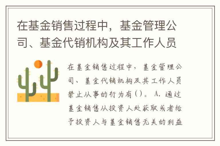 在基金销售过程中,基金管理公司、基金代销机构及其工作人员禁止从事的行为包括: