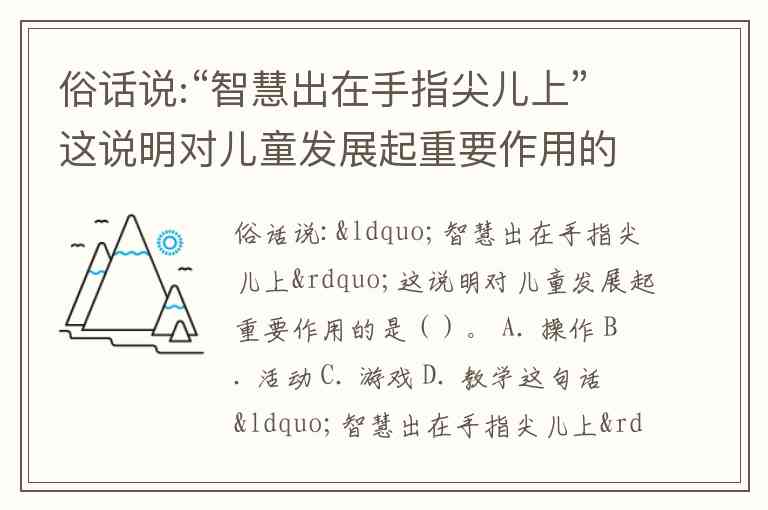 俗话说:“智慧出在手指尖儿上”这说明对儿童发展起重要作用的是()。 A. 操作 B. 活动 C. 游戏 D. 教学